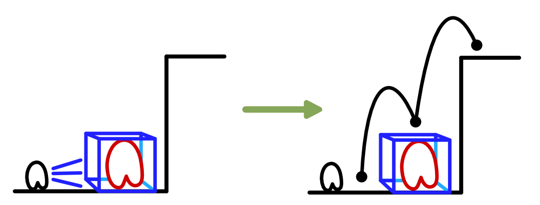 El primero es que, al congelar a un enemigo, este se transforma en un cubito de hielo, es decir: el enemigo se convierte en una plataforma al que el jugador se puede subir para alcanzar lugares más altos a los que normalmente no llegaría.