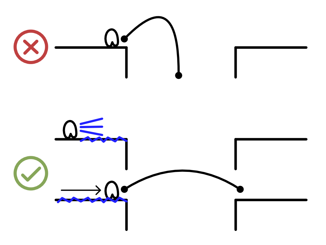 La primera es que su distancia de salto es mayor. Esto hace que el jugador pueda llegar más lejos de lo que normalmente podría.