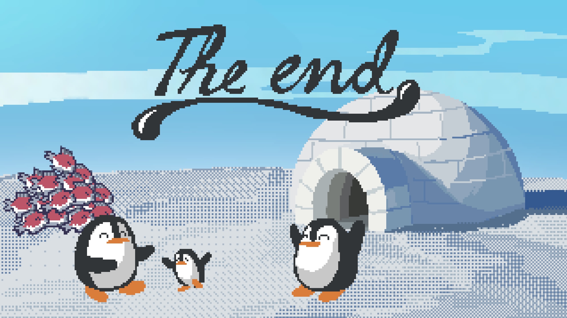 Un videojuego 2D pixel art de plataformas donde controlas a un pequeño pingüino que sale de su apacible hogar para conseguir peces, con el objetivo de alimentar a tu familia pingüina. Debes regresar a casa a salvo con la mayor cantidad de comida posible.